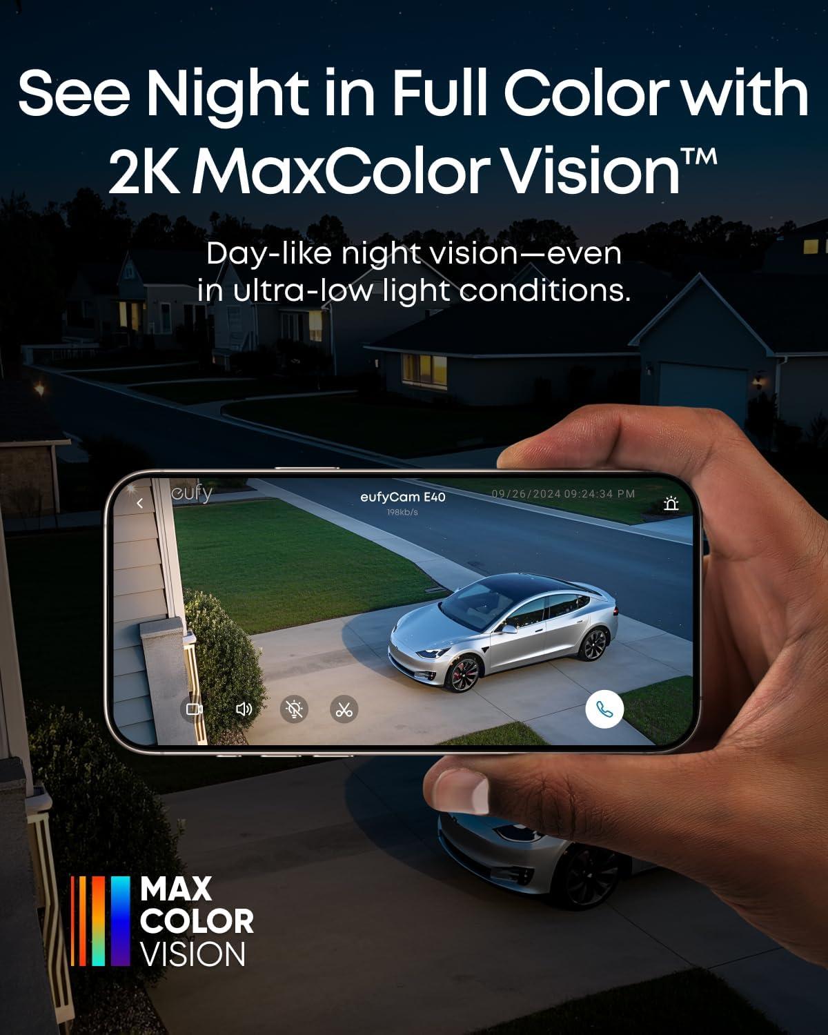 Day-Like Clarity at Night: Powered by 2K QHD and MaxColor Vision, the camera delivers vivid, full-color surveillance footage. Enjoy a day-like view even in ultra-low light conditions.